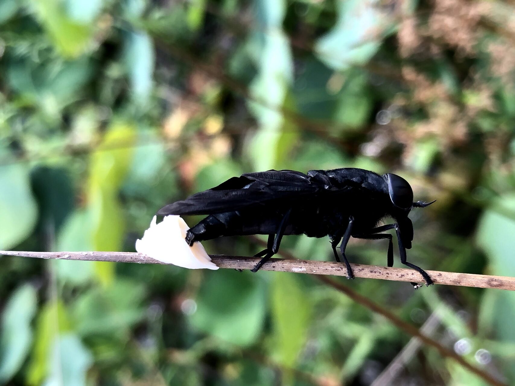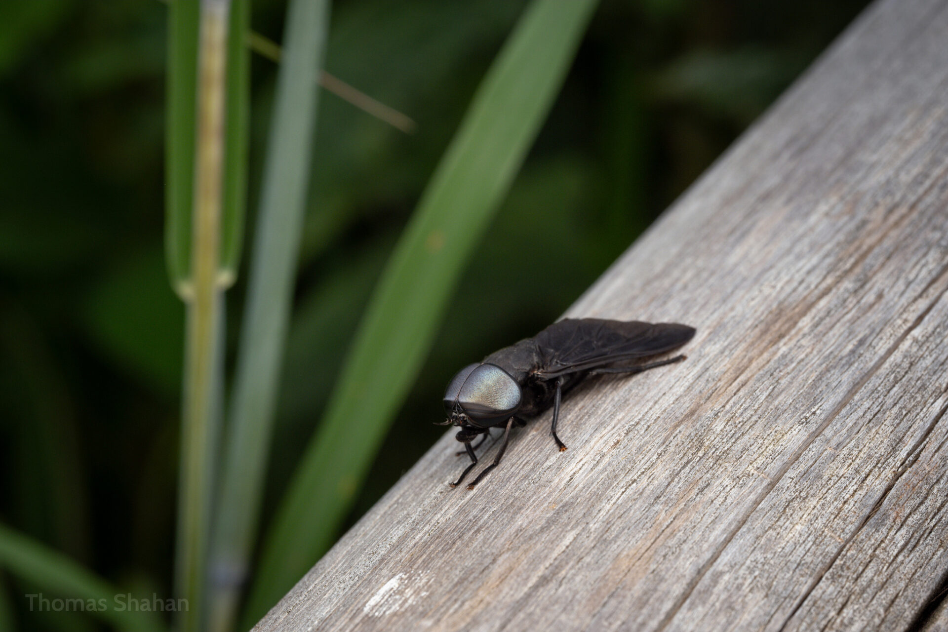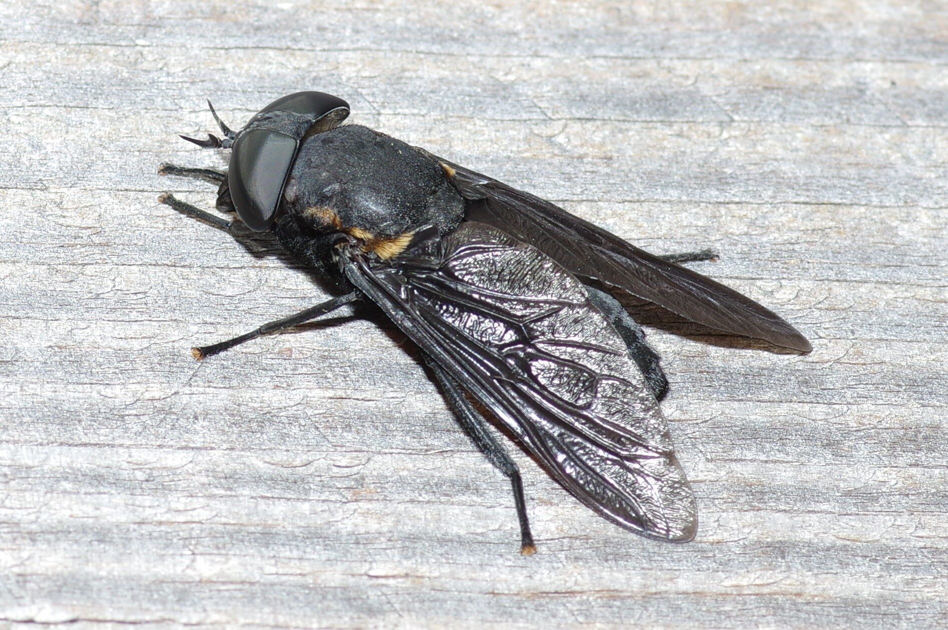 Notable behavior: Only female Black Horse Flies bite, requiring protein-rich blood meals for egg development, while males content themselves with nectar and plant juices.