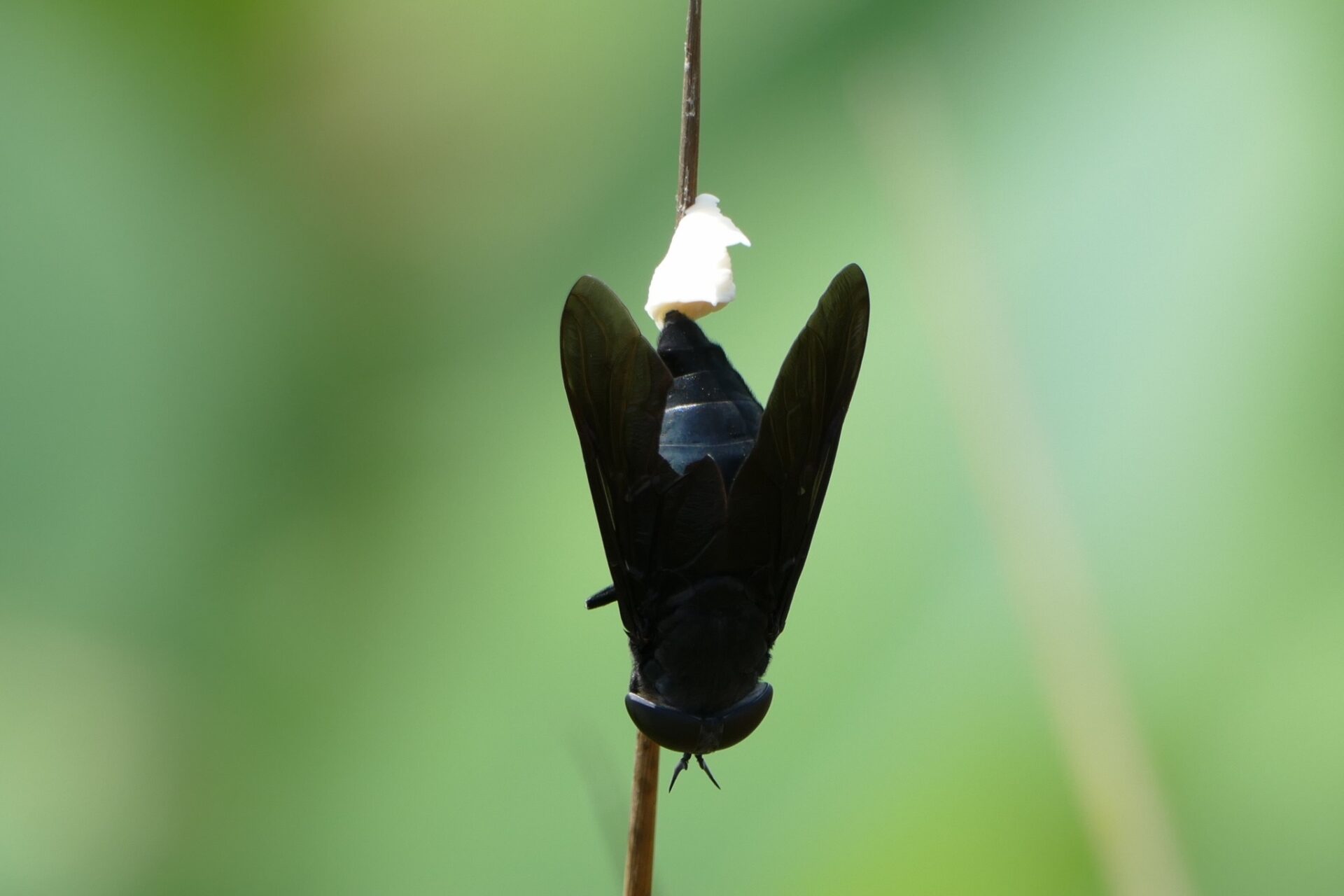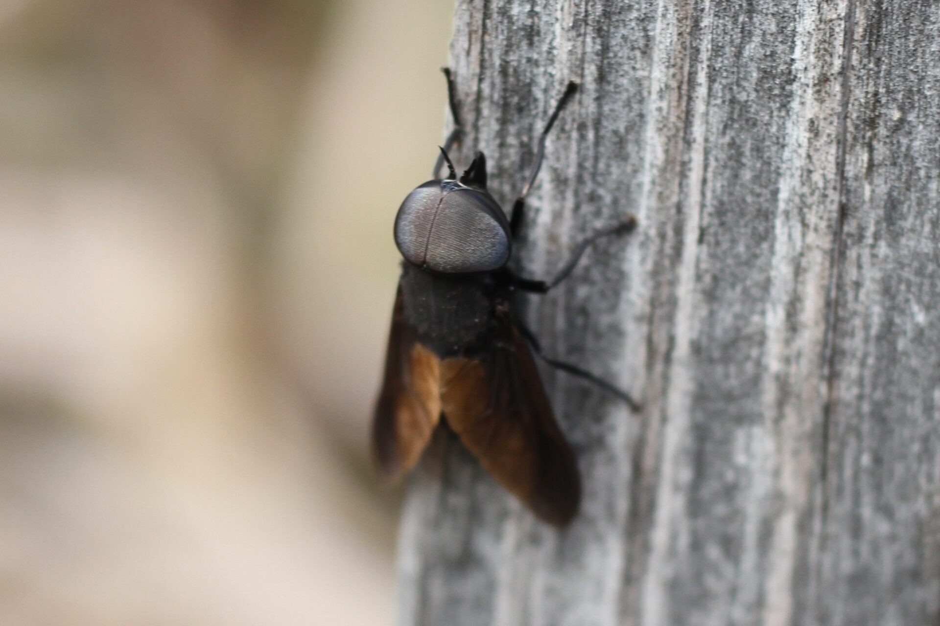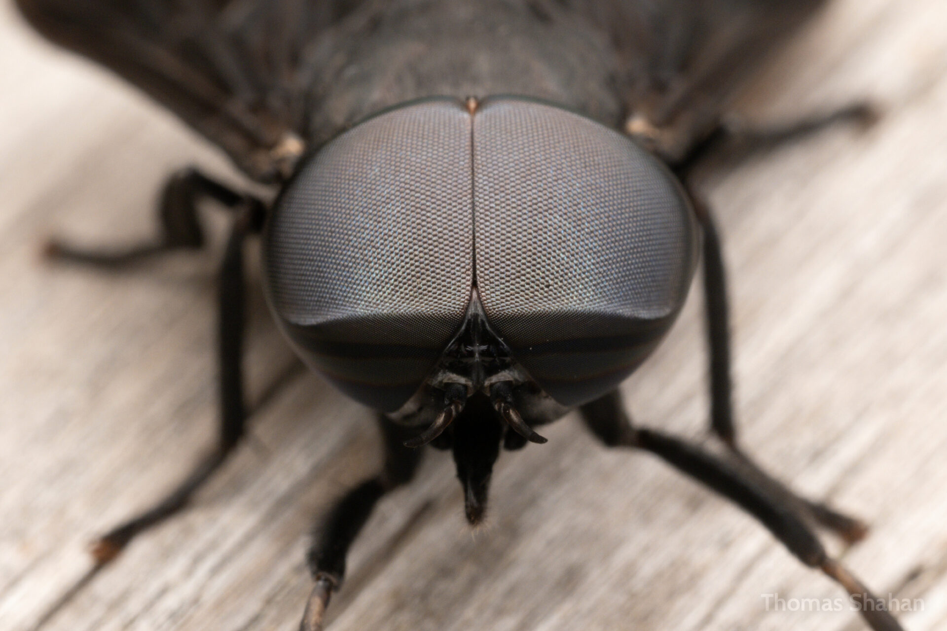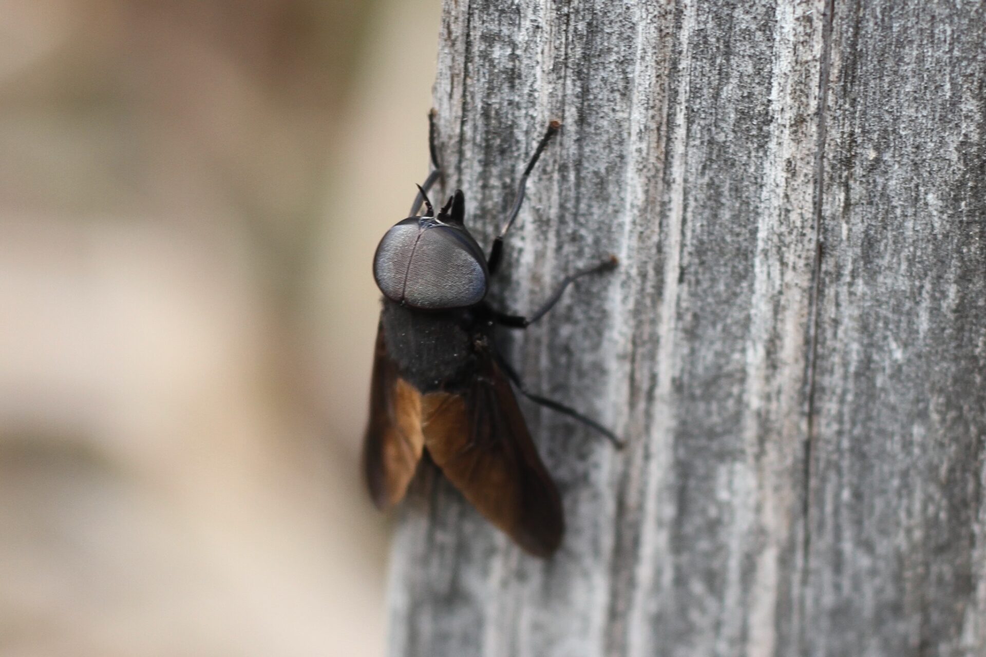 Notable behavior: Only female Black Horse Flies bite, requiring protein-rich blood meals for egg development, while males content themselves with nectar and plant juices.