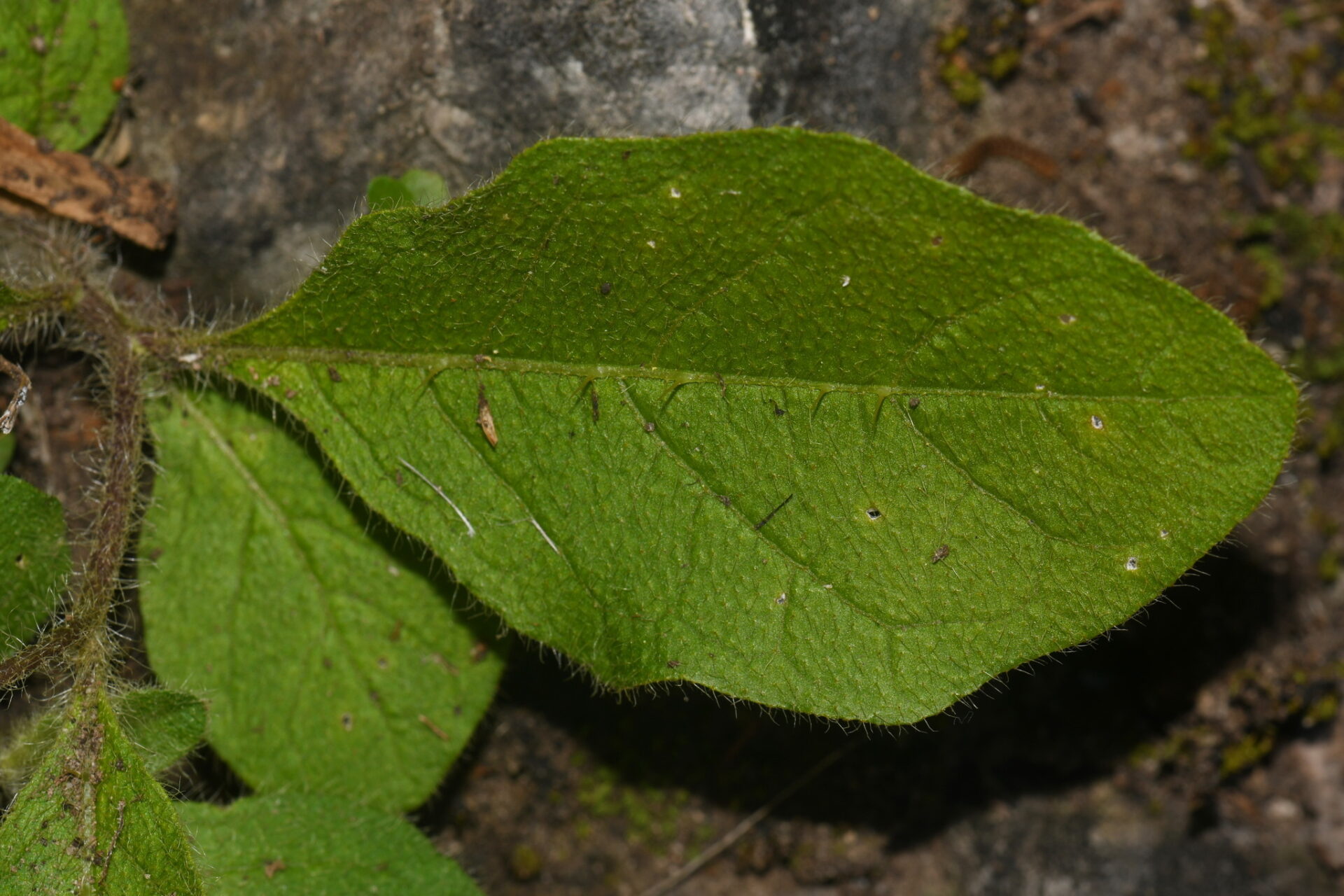The leaves tell a story of adaptation and beauty, displaying an elliptical to ovate shape with gently undulating margins that catch and play with filtered sunlight. These deep green leaves, measuring 3-8 centimeters in length, possess a subtle texture that feels almost velvety to the touch, thanks to a fine covering of stellate hairs that shimmer silver in the right light.